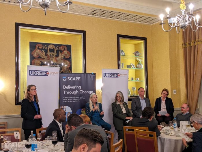 Local leaders and business representatives gathered for the UKREiiF Leaders Group dinner. Panel (from Left) Cllr Kay Mason‑Billig (Norfolk County Council Leader) Conservative, Cllr Caroline Topping (SBB member & East Suffolk DC Leader) Green, Cllr Martin Tod (Winchester City Council Leader) Lib Dem, Cllr Carli Harper (Norwich City Council Cabinet Member) Labour